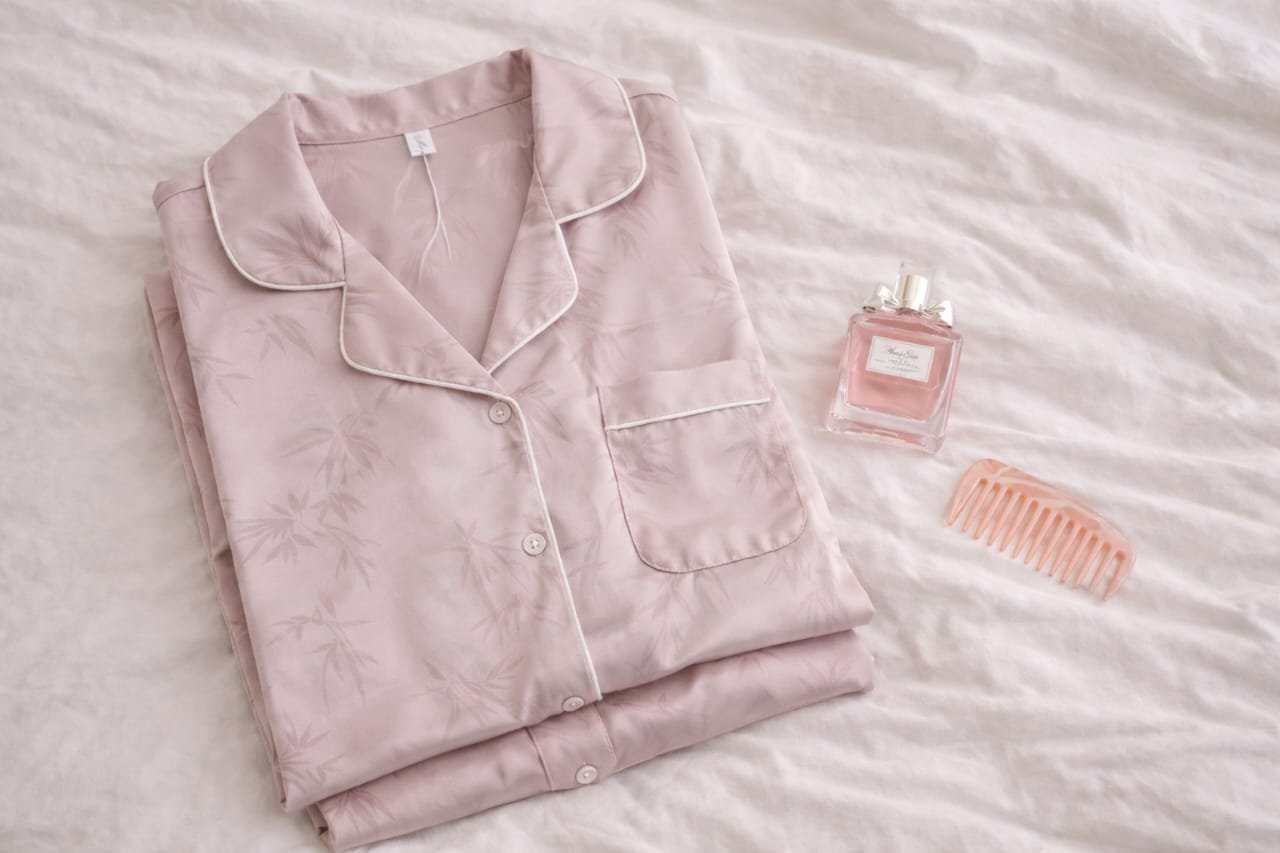 1 review for Jacquard Silk Long-Sleeve Pajama Set – Free Size