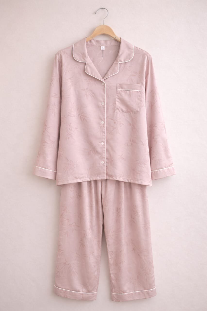 Jacquard Silk Long-Sleeve Pajama Set – Free Size